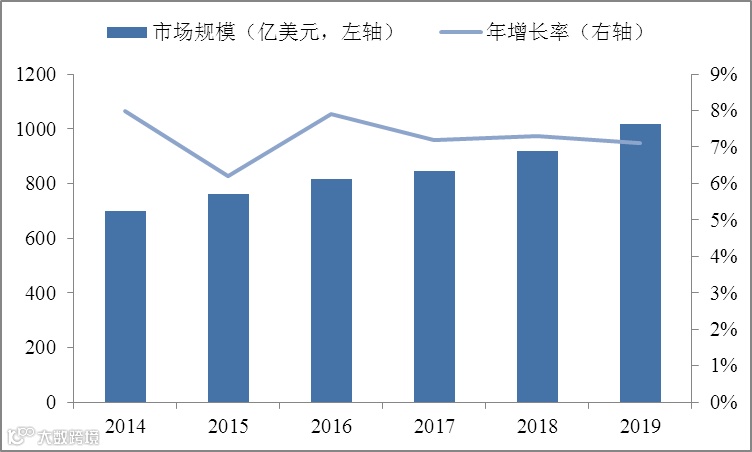 2016年,全球网络安全市场延续了近年来高速发展的强劲势头。全年全球网络安全市场总额约816亿美元,相比2015年增长7.9%。未来五年企业网络安全市场将保持8.3%的复合增长率,至2020年,全球网络安全市场将高达1016亿美元。