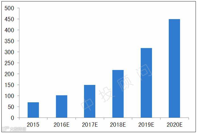 网络剧市场发展前景乐观,2015年网络剧市场规模近70亿元,中投顾问研究中心预测,到2020年其市场规模有望达450亿元左右,未来五年复合增长率约为45%。