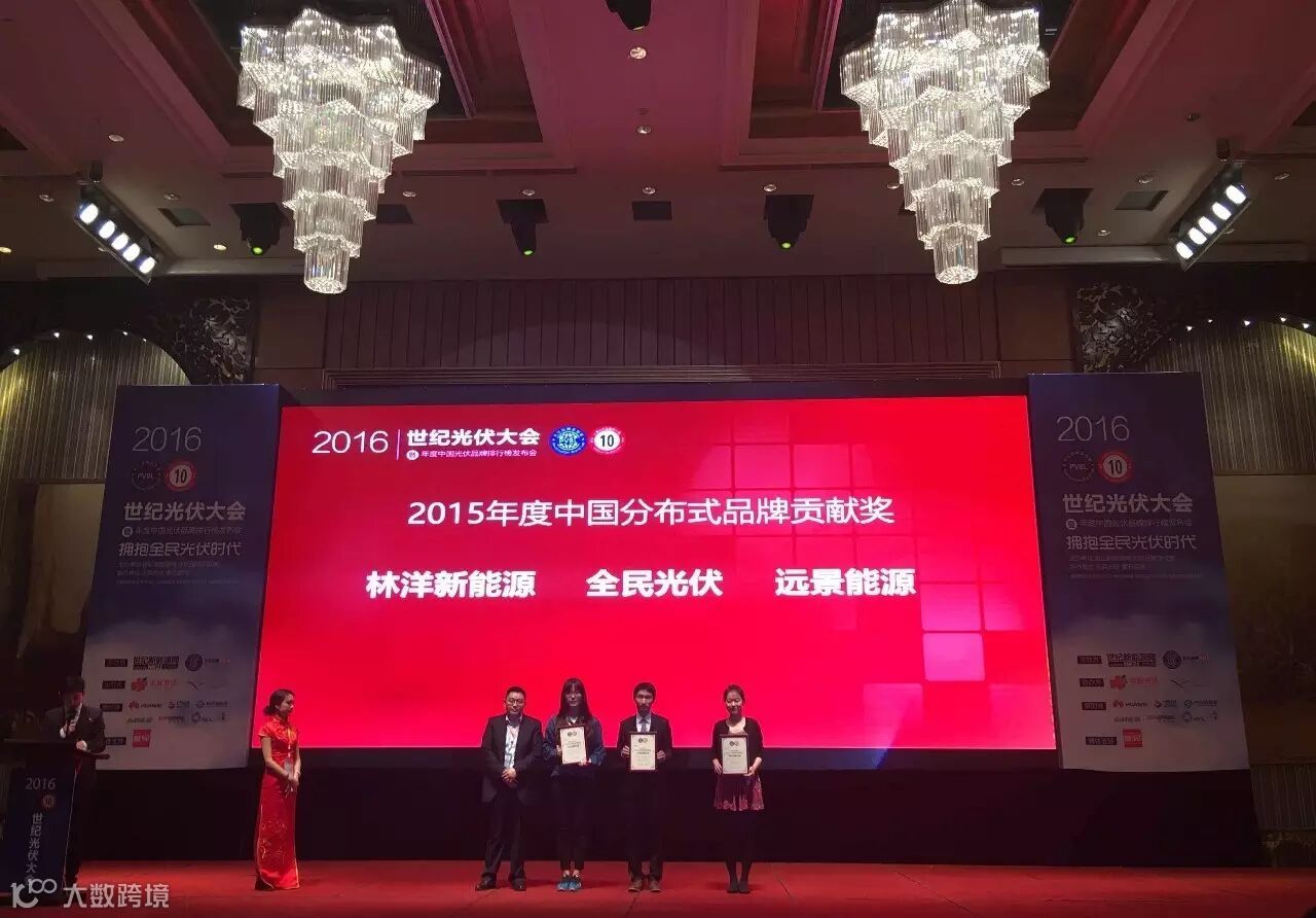 2016年4月15日, “2016世纪光伏大会暨年度中国光伏品牌排行榜发布会”在上海浦东星河湾酒店隆重举行。江苏林洋新能源科技有限公司(下称“林洋新能源”)荣获2015年度中国光伏品牌排行榜“分布式贡献大奖”。会上,林洋能源(林洋新能源母公司)总经理方壮志发表题为《能源互联网的局域网模式:分布式光伏和微电网》的主题演讲。