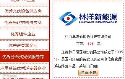 “光能杯”年度光伏行业评选活动暨颁奖典礼自2012年起已成功举办4年,活动由光伏行业全媒体平台Solarbe索比光伏网、《光能》杂志联合主办,携手行业协会及权威专家、知名研究机构全面评价过去一年中国光伏业的发展状况,推介这个产业最具影响力和先锋精神的杰出人物和不凡事件,表彰他们对中国的光伏行业发展所做出的卓越贡献。江苏林洋新能源科技有限公司成功入围“优秀电站开发投资商”、“优秀分布式光伏服务商”两项大奖。