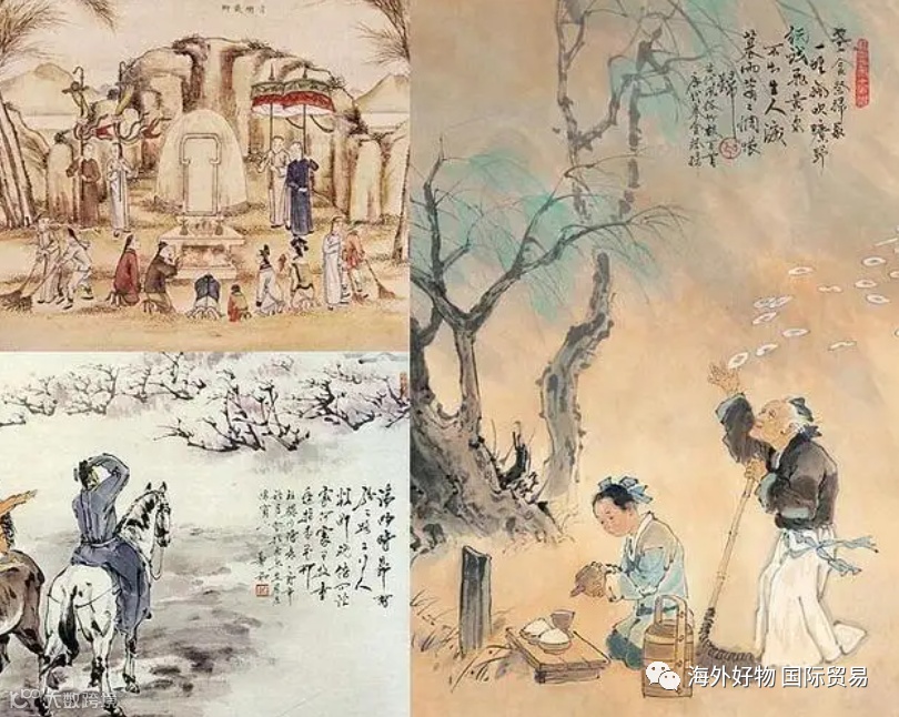 其实,扫墓在秦以前就有了,但不一定是在清明之际,清明扫墓则是秦以后的事,到唐朝才开始盛行。《清通礼》云:“岁,寒食及霜降节,拜扫圹茔,届期素服诣墓,具酒馔及芟剪草木之器,周胝封树,剪除荆草,故称扫墓。”并相传至今。