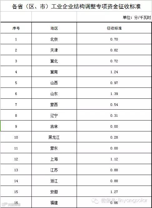 各省(区、市)征收标准