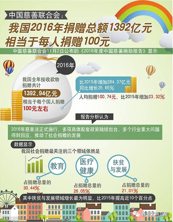 图表:中国慈善联合会:我国2016年捐赠总额1392亿元 相当于每人捐赠100元 新华社发大巢制图