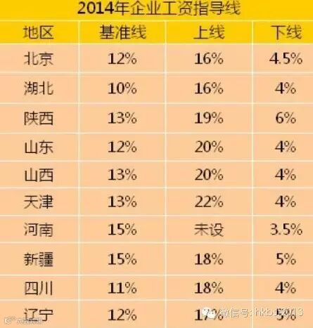据中新网记者不完全统计,截至6月17日,全国共有北京、天津、湖北、山东、山西、陕西、河南、新疆、四川、辽宁等共10个省(区、市)发布了2014年的企业工资指导线。在这14个地区中,河南和新疆的基准线最高,均为15%;湖北的基准线最低,为10%。