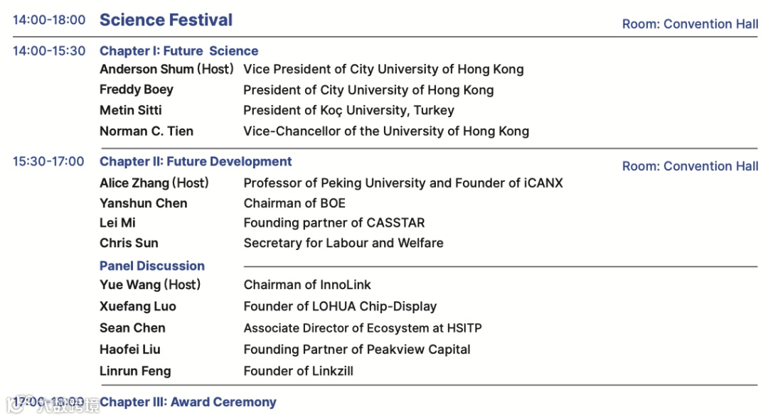 下午的科學盛典Science Festival,則是一場連接科學與產業的靈感盛會。三大篇章——「未來科學」「未來發展」「頒獎典禮」,匯聚科學家、創業者與投資人,共話創新生態與人才未來。在這裡,科學成為文化,創新成為力量,人才成為未來!