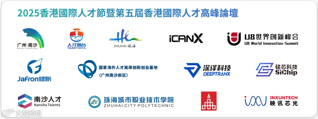 「2025香港國際人才節」專門設立了展覽展示區域,吸引了一大批內地城市、政府組織及標桿企業機構參與展覽展示。其中,廣州南沙、煙台、珠海、中山、江門等內地城市作為活動的聯合主辦方,積極參與其中。同時,活動也匯聚了如iCANX、U8世界創新峰會等國際組織,共同帶來南沙人才發展公司、大灣區博士後公共研究中心、離岸基地(南沙)、健帆生物(Jafron)、硅芯科技(SiChip)、映訊芯光(Inxun Technology)、深譯科技(DeepTranx)、珠海城職院(ZHCPT)等眾多單位參展。