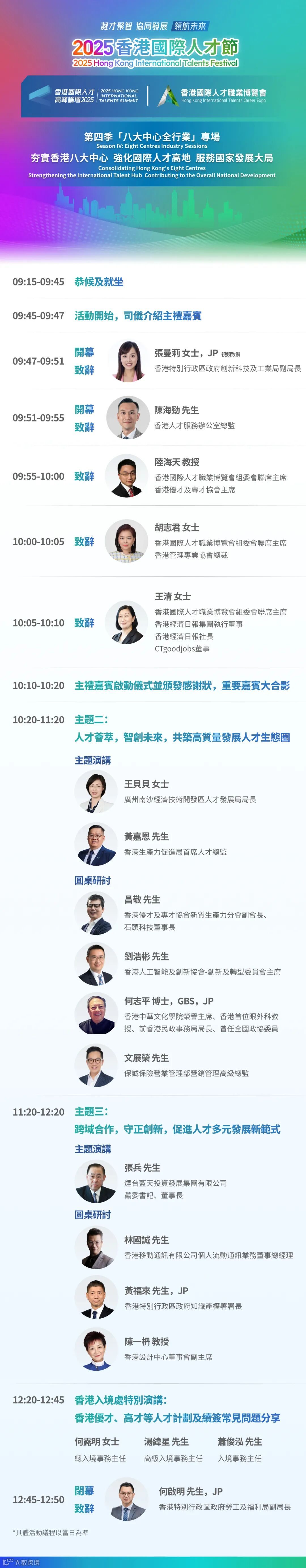 邀請香港特區政府官員、企業領袖及行業專家等重量級嘉賓發表演講,介紹人才政策紅利與產業發展趨勢