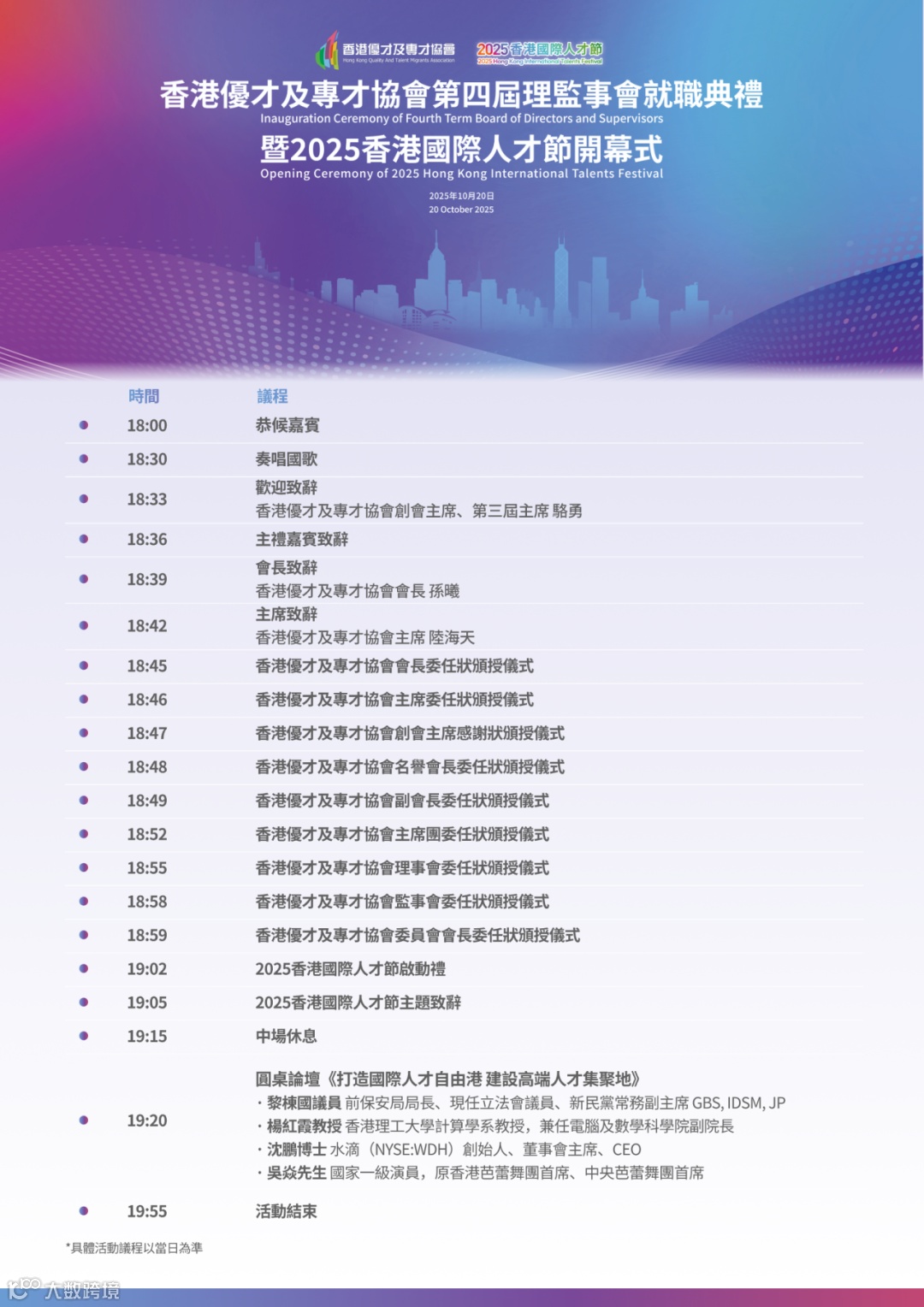 盛會預告!不容錯過的盛事即將來臨!香港優才及專才協會第四屆理監事會就職典禮暨人才節即將盛大開幕!此次盛會匯聚政、學、商、文等重磅嘉賓!深度碰撞觀點,共同探討香港在全球人才競爭中的戰略定位。我們誠摯邀請您參與,分享您的見解與經驗!期待您的蒞臨,共同為香港的未來發展貢獻智慧!