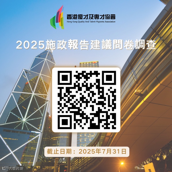 香港優才及專才協會正式發起「2025施政報告建議問卷調查」。這不是一次普通的問卷,而是真實反映人才群體在學業、創業、就業、置業的現實需求,系統追蹤人才發展軌跡,助力政府政策紮根現實、回應未來。也是描繪我們群體畫像、更好地服務會員、精准對接需求、指引協會未來航向的關鍵一筆!