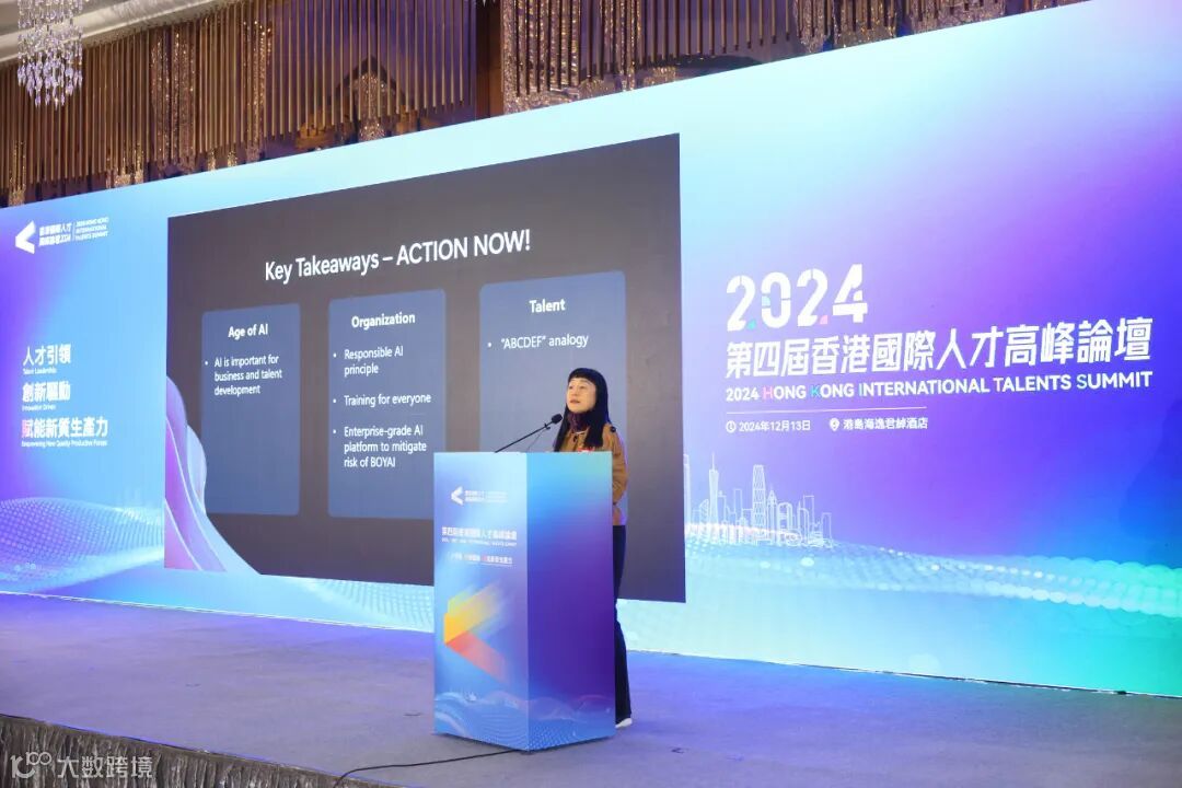 Microsoft 香港及澳門區總經理陳姍姍女士談到AI對於企業發展和工作市場的重要性,她還提出了企業和個人在AI時代的機會,並給出建議。