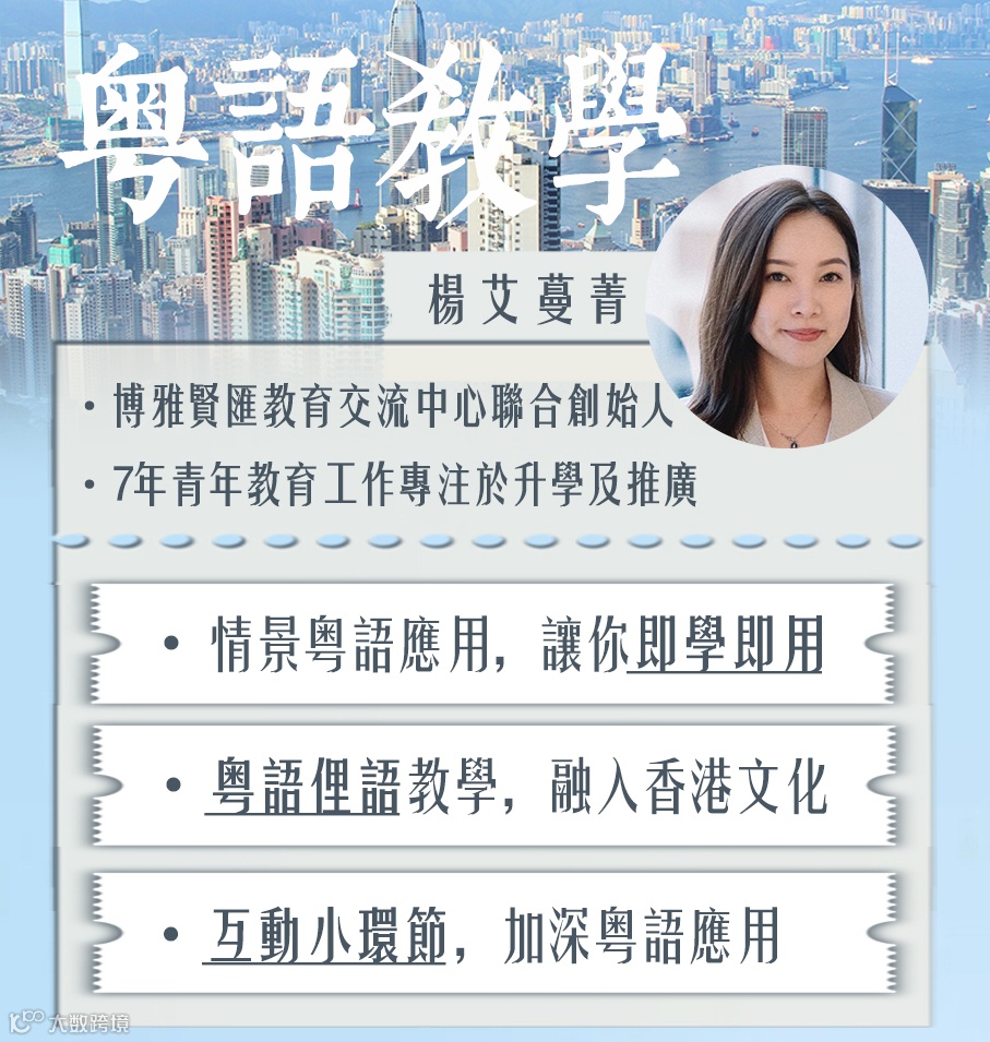 想在香港輕鬆應對各種場景?本次活動中,博雅賢匯教育交流中心聯合創始人楊艾蔓菁女士將帶來實用的粵語學習體驗。擁有7年青年教育經驗的她,專注於升學及推廣,將通過情景粵語應用教學,讓你即學即用;深入淺出地講解粵語俚語,帶你快速融入香港文化;更有互動小環節,加深粵語實際應用能力。無論是職場交流還是日常生活,這堂課都能幫你輕鬆掌握粵語,開啓在香港的便捷生活!