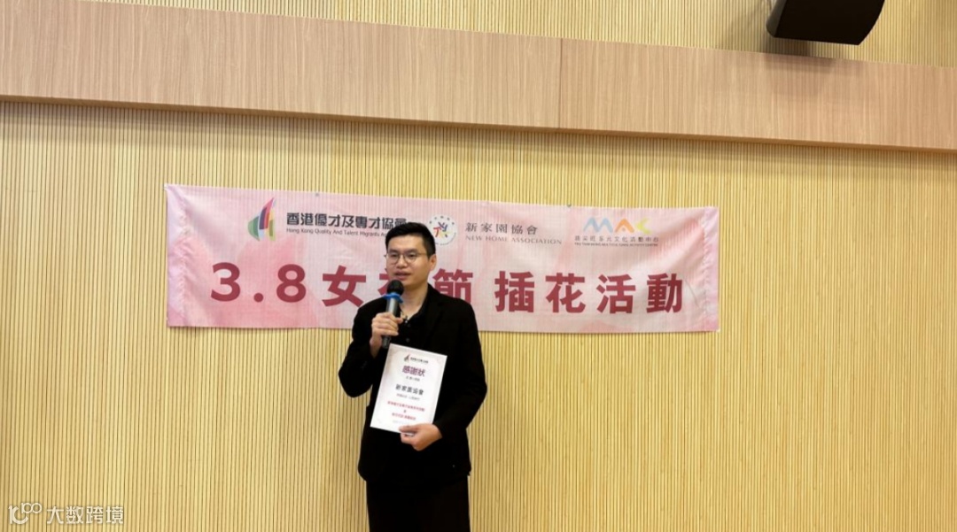 香港優才及專才協會副主席劉旭東先生出席活動,為新家園協會代表林先生頒發感謝狀。並在致辭中表示,「三八」女神節是慶祝女性成就與貢獻的重要節日,插花不僅是一門藝術,更象徵著女性的美麗和力量。女士們親手創作的花藝作品,正是對『春日花語,美麗綻放』主題的生動詮釋。我們希望通過此次活動,讓每一位女性都能在繁忙的工作和生活中找到釋放壓力的方法,找到屬於自己的自信和精彩,同時也為弘揚中華傳統文化和提升審美修養貢獻一份力量。