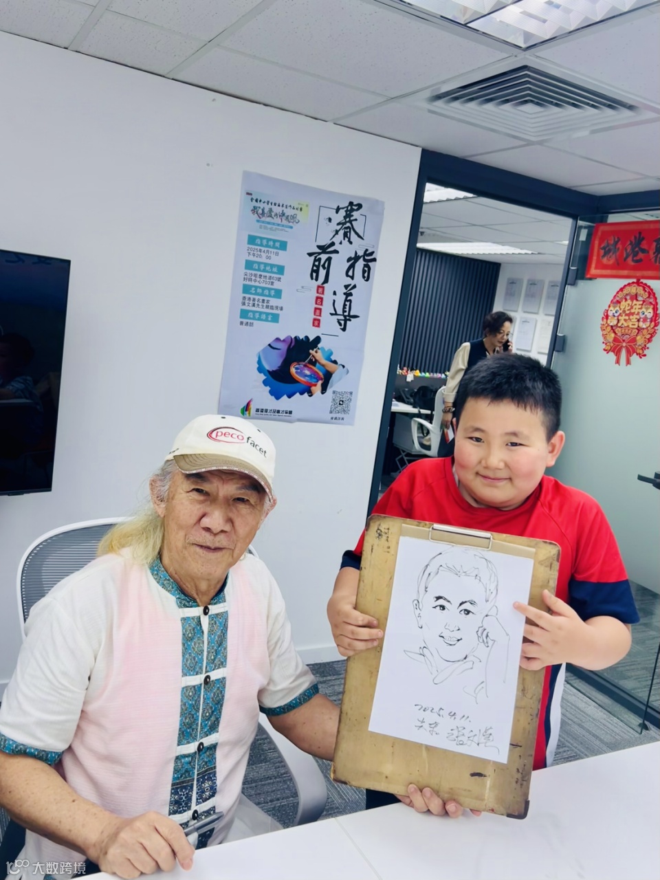 在示範環節,張文漢先生採用人物速寫展示動態捕捉與情感傳遞的平衡之道,在現場為同學們示範了多幅肖像速寫。孩子們踴躍參與和大師互動,很多孩子都幸運地得到了張先生給他們現場畫的肖像速寫。