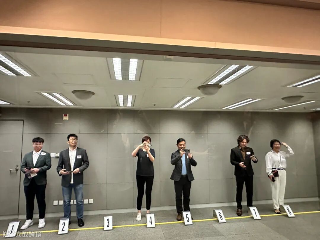 來到人證指認室,大家排隊站好模擬現場指認的真實過程,奇妙的體驗更是讓大家臉上洋溢著快樂的笑容,紛紛拿出手機拍照紀念這特殊的一刻。