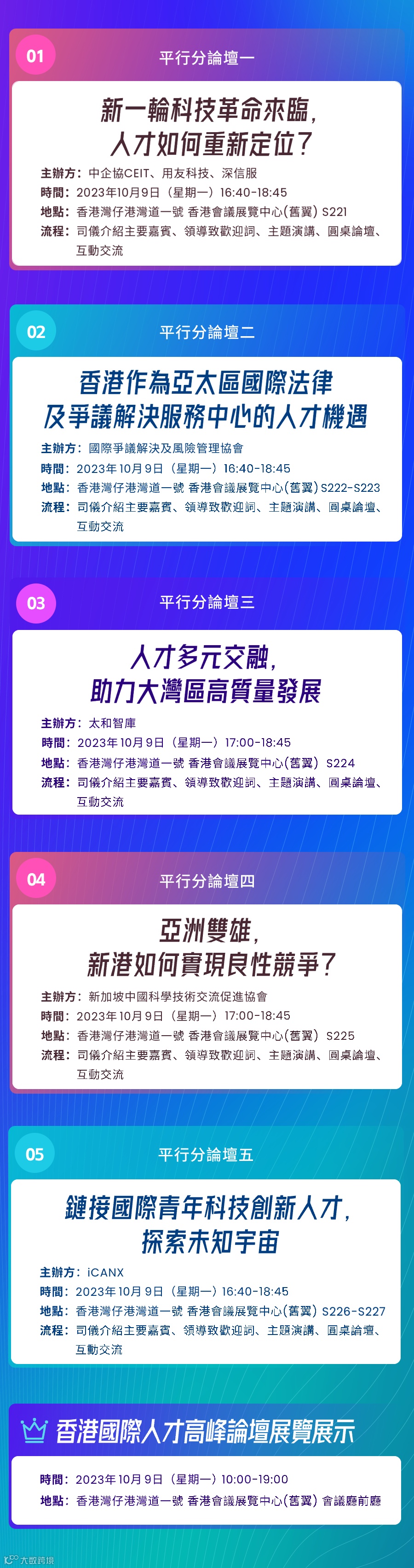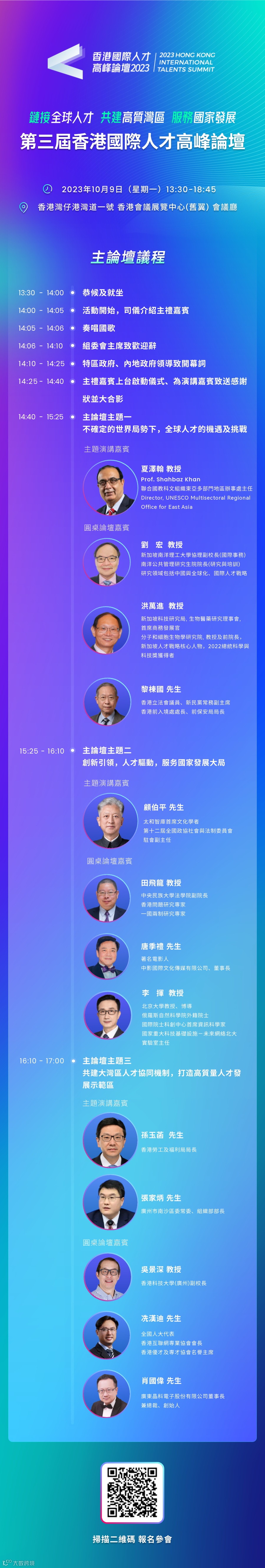 「第三屆香港國際人才高峰論壇」將於2023年10月9日在香港灣仔會展隆重舉行,論壇主禮嘉賓、主論壇、分論壇、展覽展示和組織機構全面曝光,精彩不容錯過,歡迎把握最後時機報名參與!