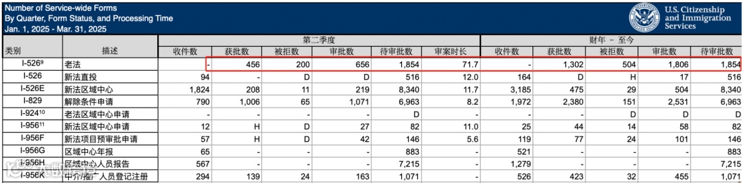 反观2025财年第二季度EB-5旧政,共审批656份I-526申请,其中456份获批,200份拒签,拒签率较高。主要原因有两点: