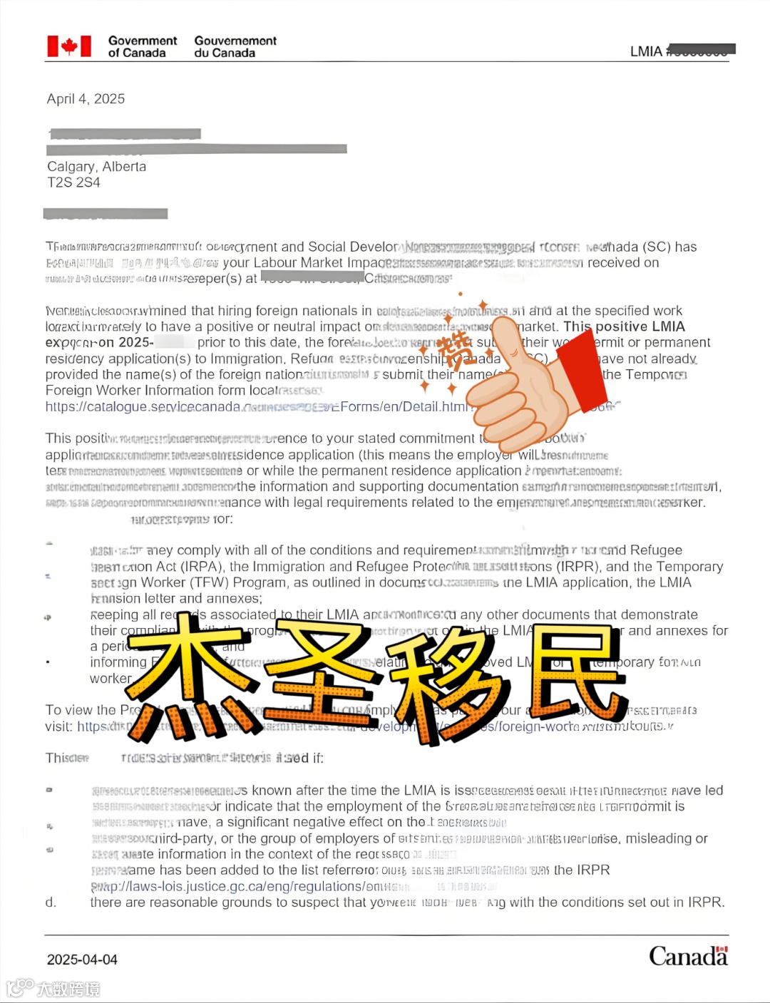 恭喜杰圣阿省AAIP客户Y女士于4月4日顺利获批LMIA!
