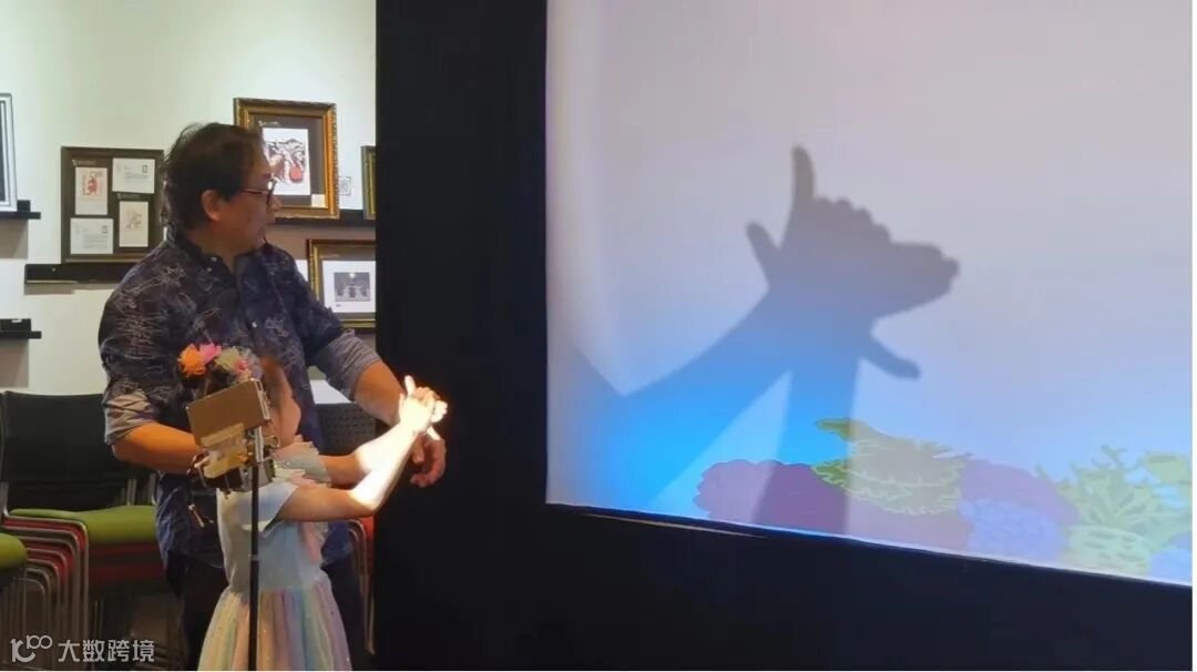 李建新大師不僅表演了皮影戲,還讓小朋友和大人們親自體驗如何操縱和演示;又親自表演了手影,也讓大家上去在光源前體驗並一一指導教授,還讓大小朋友在幕後操縱各式皮影,大家都玩得不亦樂乎,流連忘返,小女也由最初的不情願看到體驗時全情投入。大師在後台都耐心地、和聲細氣地指導著,可見大師對傳統文化的熱愛和傳承的決心。