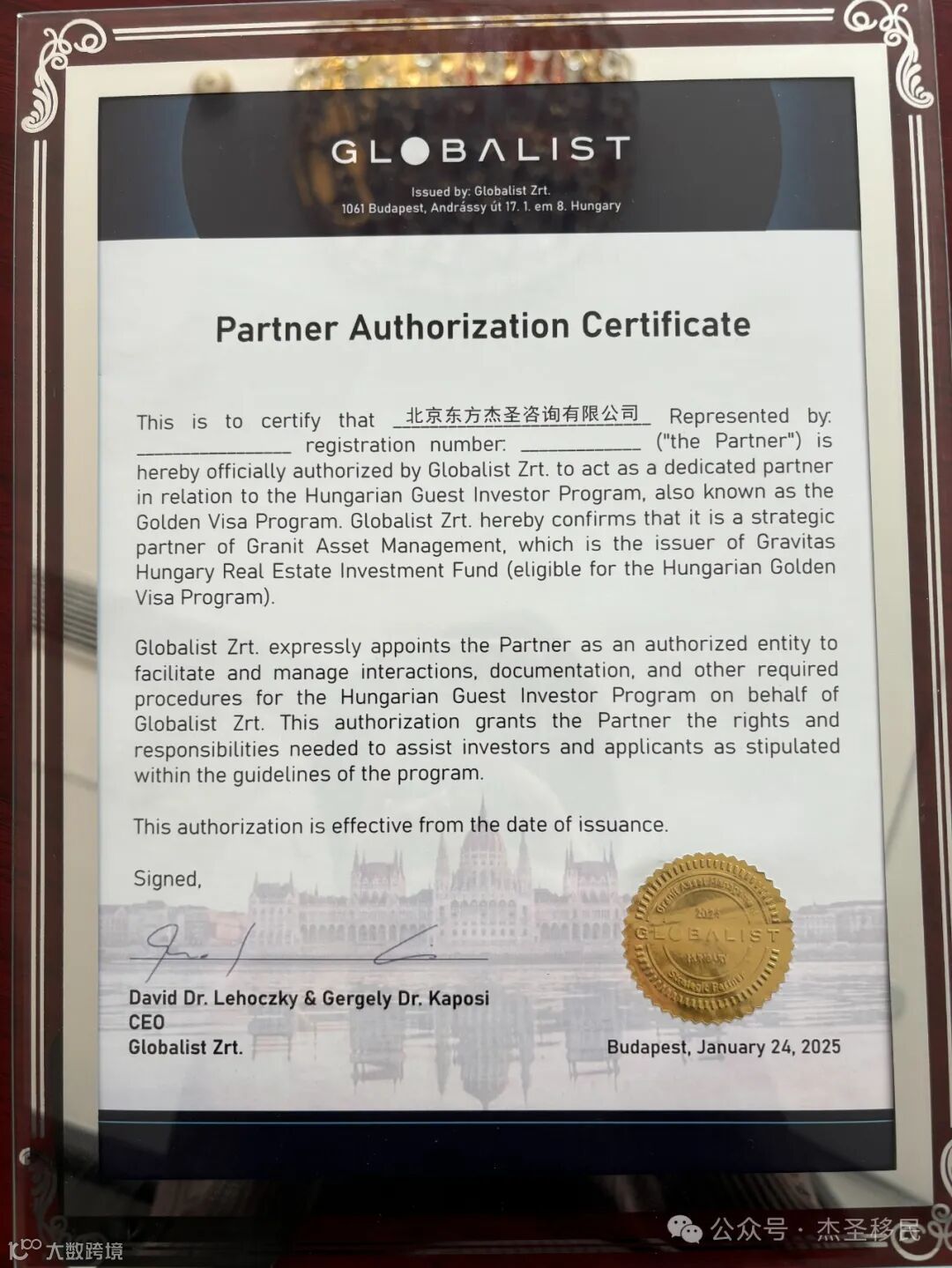 随着战略合作的顺利达成,杰圣移民也作为移民协会会长单位,十分荣幸的成为首位获得匈牙利Globalist基金项目推广授权的移民机构。
