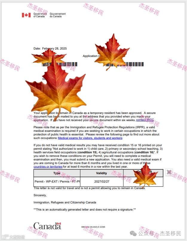 恭喜杰圣加拿大PEI-WP客户M先生全家境内续工签成功获批!