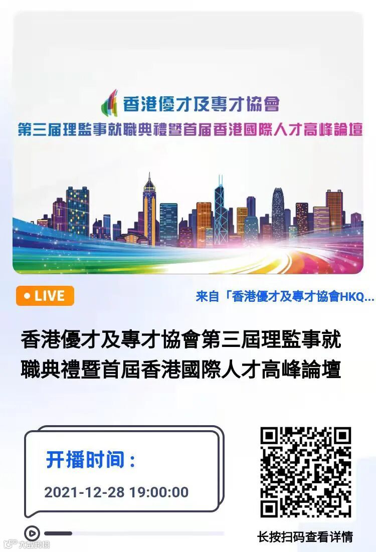 12月28日,香港優才及專才協會以「共融 · 共享· 共創」為主題舉辦首屆香港國際人才高峰論壇,聚焦香港如何在全球人才競爭中改善短板發揮優勢、人才在港發展的機遇與挑戰、以及全球人才在建設香港及國家中承擔的角色等話題進行探討,冀集思廣益,探索方案,為提升香港對國際人才的吸引力,進而為香港及大灣區各行業注入嶄新動力建言獻策,鋪墊未來。