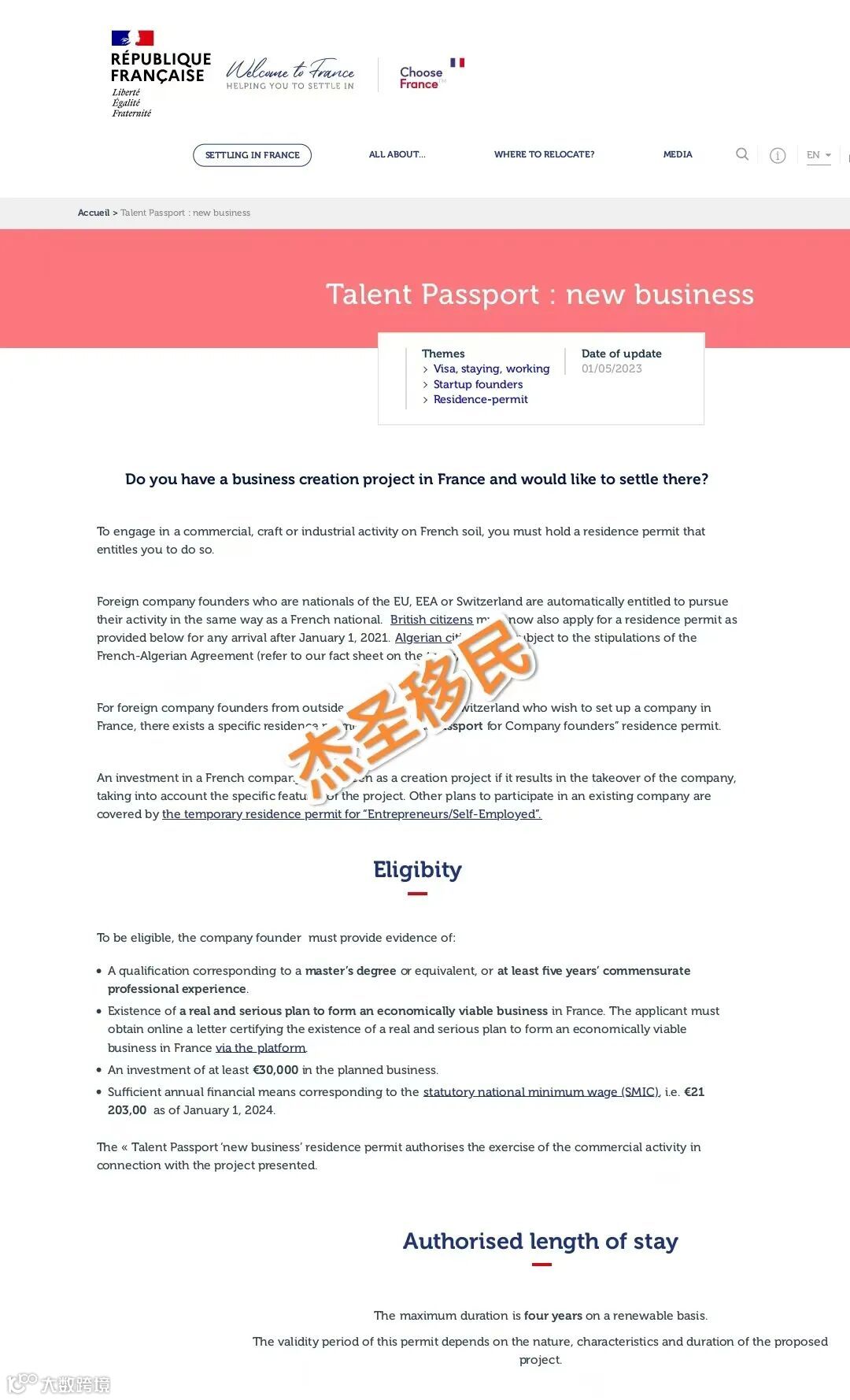 法国人才护照类别(Le passeport-talent)创业者居留计划项目(les créateurs d’entreprise),该项目门槛低、花费少、没有移民监,可以全家一起获得法国的长居身份。该项目旨在吸引外籍人士定居法国,为法国经济做出贡献。申请人可以在法国生活,其家属也可享受多年的居留许可,并且同时具有包括学习、工作和经商的权力。申请人及其家属满足一定条件后即可申换法国国籍或者欧盟10年居民卡。