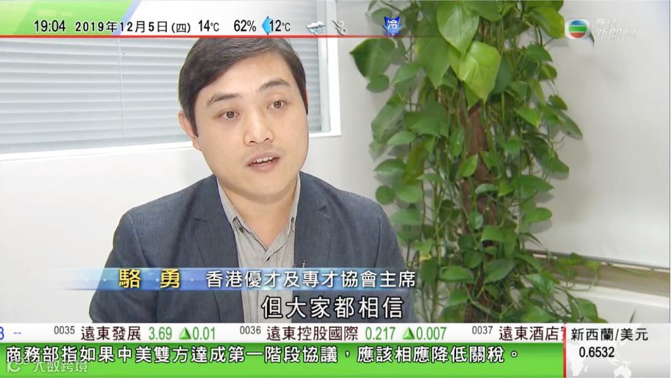 香港優才及專才協會主席駱勇,在接受香港TVB新聞採訪時指出:「香港作為國際金融中心具有"一國兩制"的制度優勢、還有中西結合的多元文化優勢,以及靠近內地聯通世界的地緣優勢等,內地人向外闖時仍然會考慮香港,雖然部分人對目前香港安全情況是有少許擔憂。」駱勇主席亦表示:「雖然這幾個月有些政治的紛爭,但大家都相信,香港整體社會對回復平靜的訴求,及香港政府止暴制亂的決心,及香港警察嚴正執法的信念的信心很大,我相信很多優才、專才是有信心來香港發展。」