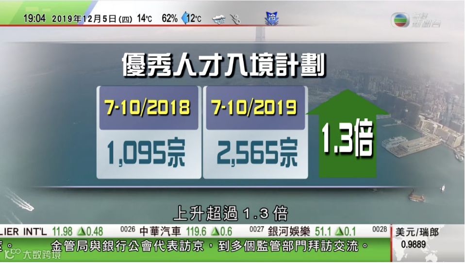 香港反修例風波引發的衝突持續,旅客大減,香港幾所大學有非本地生暫時離港回到原居地。但過去幾個月,透過各項人才入境計劃的申請個案大幅增加。其中『優秀人才入境計劃』,截至今年十月份整體(含受養人申請)遞交申請的數量已超過1萬3千人,單是7至10月有超過2500宗申請,相比去年同期上升超過1.3倍。