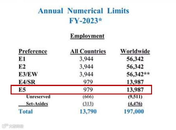2023财年EB-5新政(高失业地区+乡村项目)可用名额=13987*30%=4196张