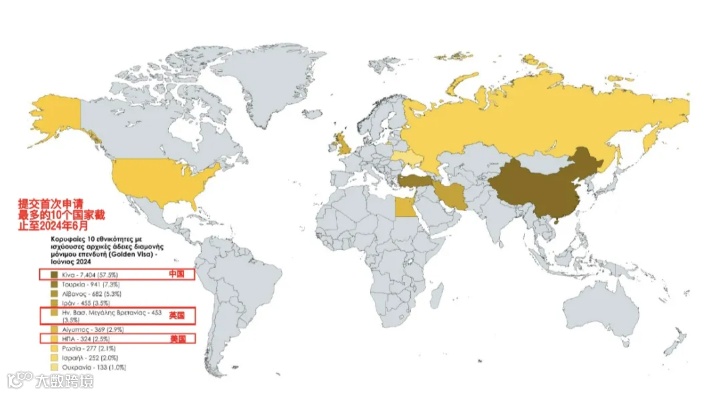 截至2024年6月,根据希腊移民局的数据显示,共计签发了永居卡45,636张,其中提交首次申请最多的10个国家中,中国申请人占比57.5%,有7,404位。