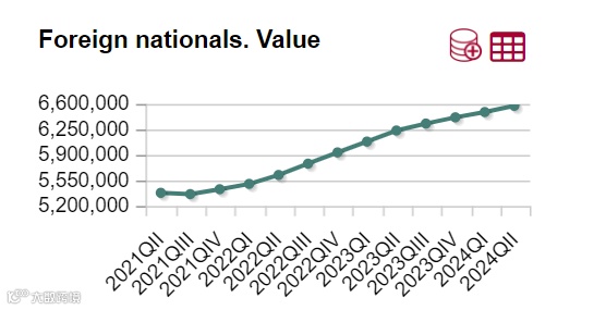 可以看到,自2021年起的三年间,有近140万的外来居民迁徙到西班牙生活。