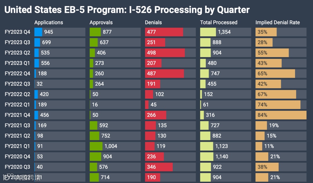 同时,本季度I-526E申请量也达到自2020年以来的新高。数据增长的背后,是过度积压的“绿卡需求”得到一定的释放。