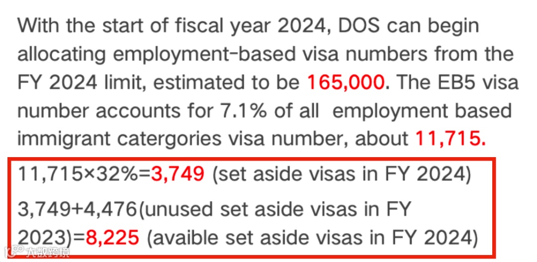根据官方提供的数据计算,2024财年预计能有8225张预留签证,能够满足这7000+的需求。同样,这也可能是“新政”排期的开始!