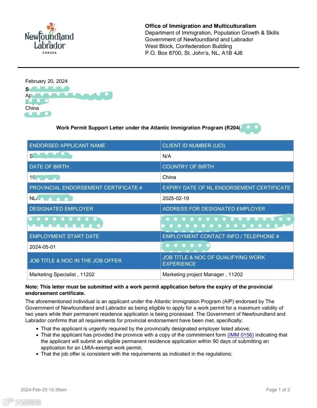 当杰圣移民在2023年年末时敏锐的发现了联邦AIP项目已进入申请的黄金窗口期,立刻建议S女士及时调转船头主攻申请AIP项目。源于对杰圣百分百的信赖,S女士即刻接受杰圣团队给与的专业方案建议,并启动了AIP项目的申请程序,并于2024年2月2日递交了AIP项目的省政府背书申请,仅仅17天,省背书获批函连同工签支持信一起风速下达,标志着S女士的加拿大移民之路,已经锁定胜局,快速从BC省众多申请者的煎熬等待中潇洒转身。
