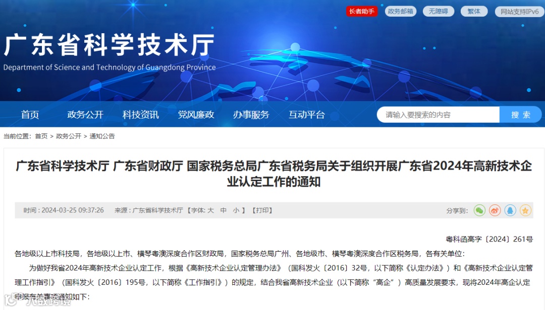 2024年我省高企认定申报在广东省科技业务管理阳光政务平台(网址:http://pro.gdstc.gd.gov.cn/egrantweb/,以下简称“省阳光政务平台”)开展,全年分3批次受理,每家企业只能申报1次。自2024年3月28日起省阳光政务平台开放高企认定申报。