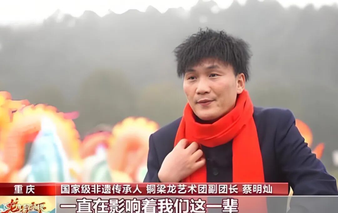 蔡明灿,作为重庆铜梁龙艺术团副团长,负责指导年轻舞龙队训练,队伍以“00后”为主。他严格规范动作细节,推动龙舞的创新传承。