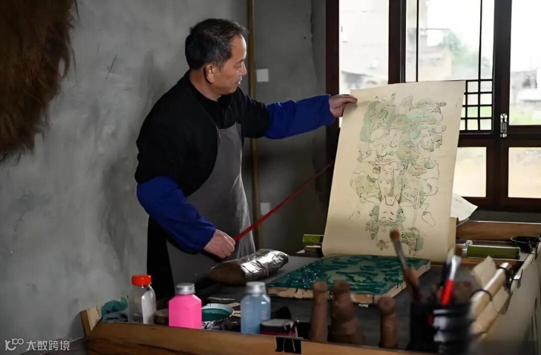 他还推动创新,开发包包、服饰等文创衍生品,并与高校合作编撰教材,让年画融入现代生活。