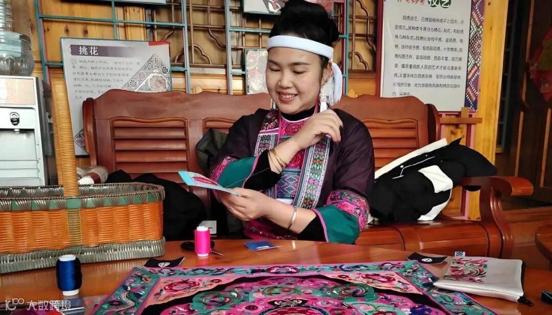杨甜老人五十年如一日守护着清花绣坊,她将传统纹样创新为现代家居装饰,让侗绣壁挂走进都市客厅。