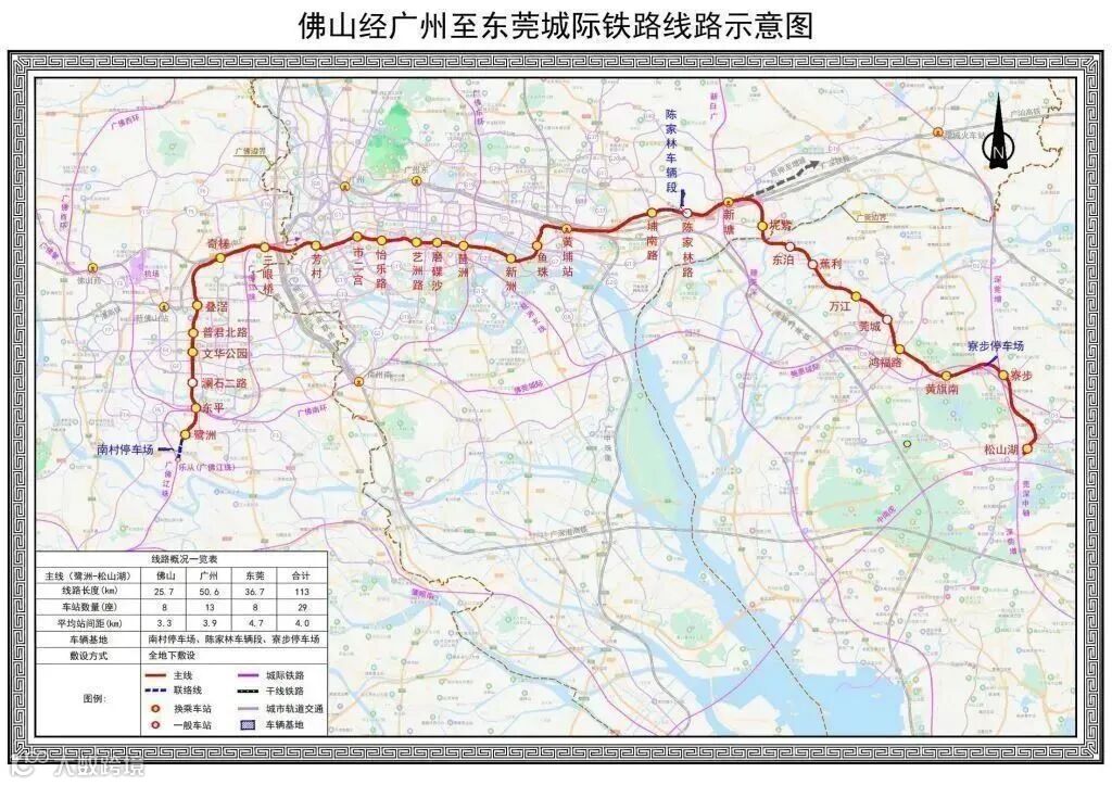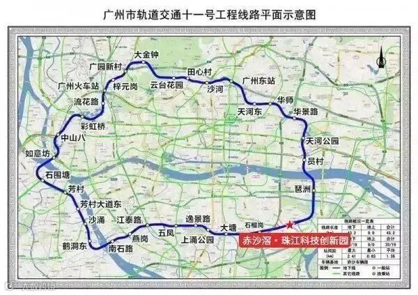 根据项目总平面图显示,广州段有13个站点,其中,珠江科技创新园所在的琶洲人工智能与数字经济试验区将拟建琶洲站,开通后将实现广州至佛山、东莞中心30分钟互达。