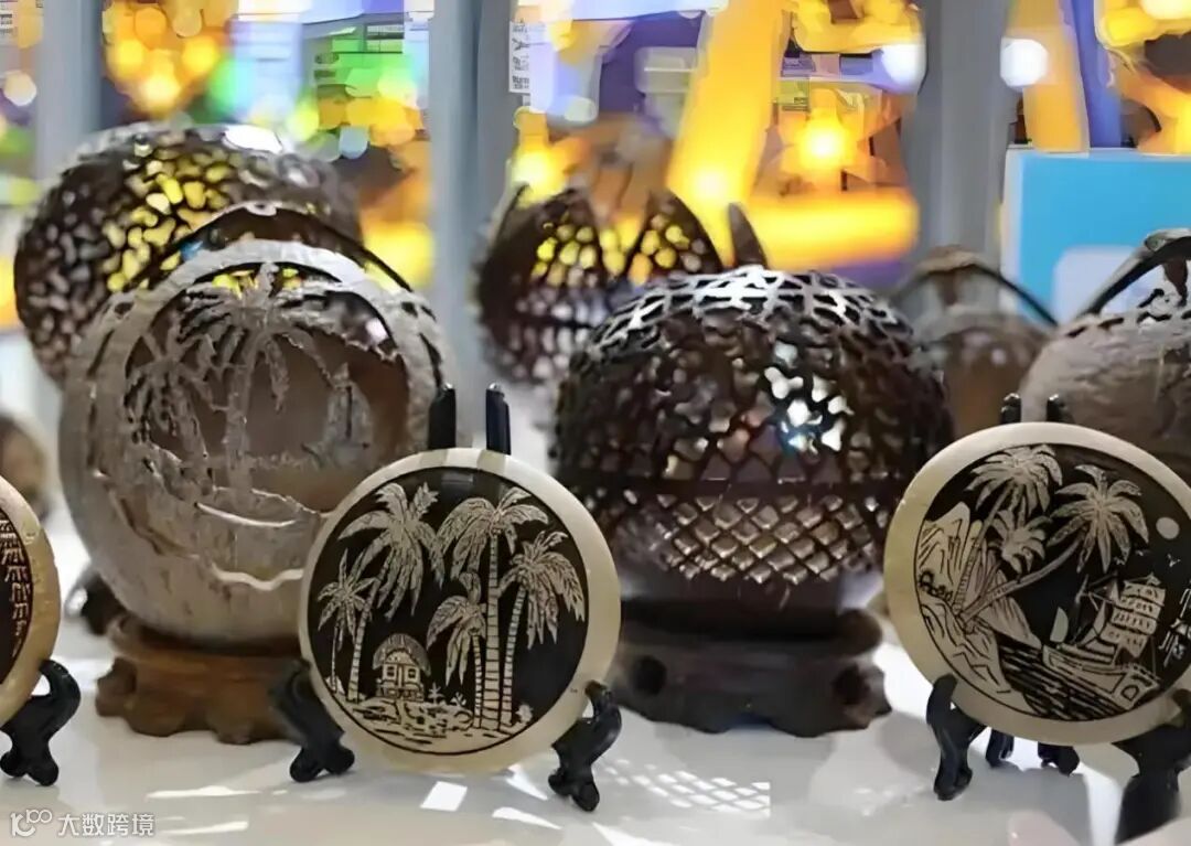 “海南椰子半海南”,椰雕艺人以椰壳为纸、刻刀为笔,雕镂出山水楼阁与花鸟虫鱼。2025年世界运动会期间,青神竹编虽出风头,但海南椰雕奖牌盒以“椰风海韵”主题同样惊艳全球,展现“海南工艺双绝”魅力。