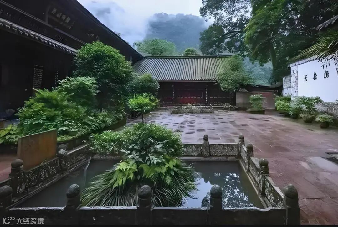 唐僖宗年间慧通禅师所建,取"山水有清音"之意。双桥清音处,黑白二江激荡,古杉林掩映唐代飞檐,梵钟与涧泉共鸣。