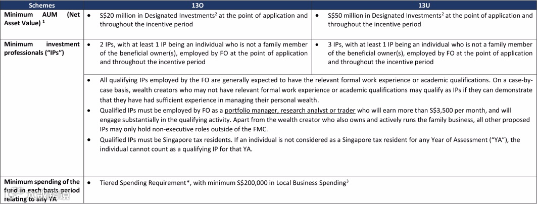 原本13O与13U的最低开支分别在20万新币与50万新币,新政虽未提高门槛,但做出了分层支出要求,二者均须满足当地业务支出为至少20万新币。