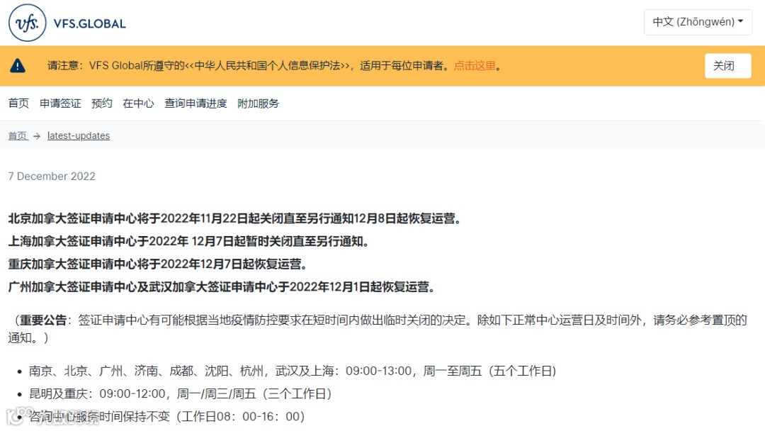 疫情防控政策再次调整之后,加拿大签证中心也给出了恢复运营的时间。首批恢复的分别是位于北京、武汉、重庆、广州的签证中心。
