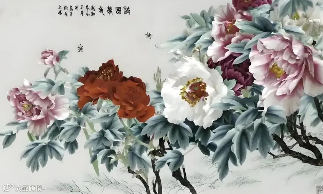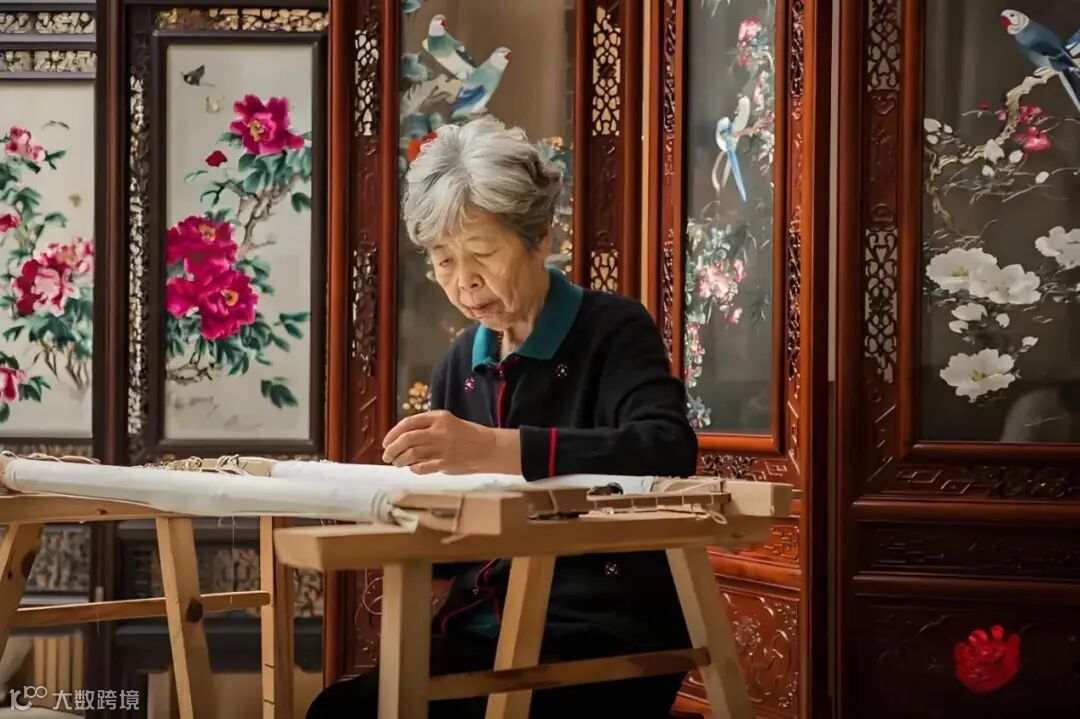 "十指春风"绣出的汴绣,以"针线写生"著称。88岁高龄的王素花独创"活针"技法,用丝线再现《清明上河图》中740个人物,耗时近三年。2024年郑州非遗展上,其双面异色绣《牡丹》以238万成交,创当代刺绣拍卖纪录。