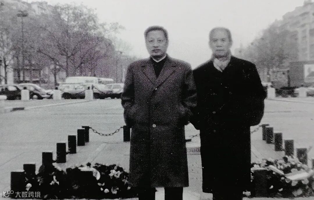 王晋与中联部部长乔石在巴黎凯旋门前。(图源:《从太行山到加勒比海——王晋大使的外交生涯》)