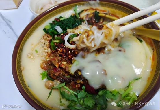 保山人的早餐从一碗稀豆粉开始。以豌豆淀粉熬制的稀豆粉,豆香浓郁,温润绵密。搭配米线或烤饵块,咸香滋味直击灵魂,堪称“滇西早餐天花板”。