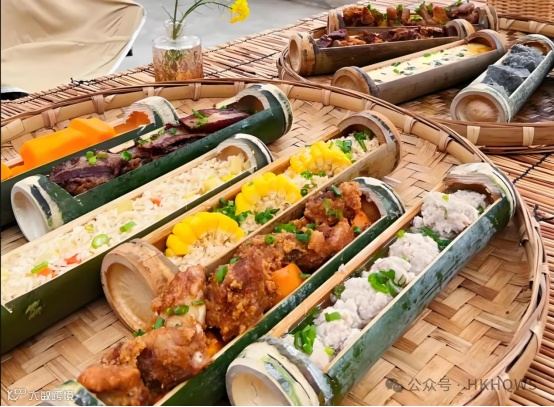 以新鲜竹筒为器,填入香米与食材蒸制。竹香沁入米粒,米饭饱满晶莹,揭开竹筒的瞬间,自然的气息扑面而来,仿佛将潞江坝的绿意一口吞下。