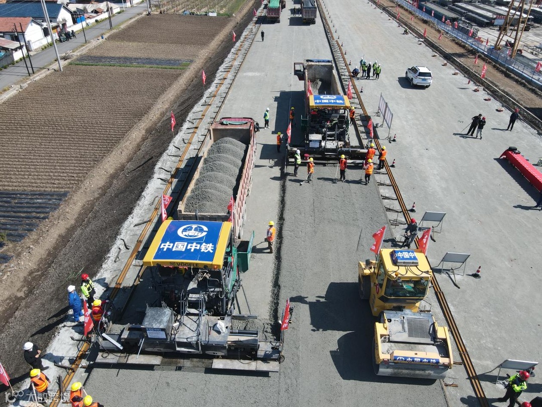 4月29日,在中国中铁桓集高速02工区K234+338~K234+638段施工现场,路面基层大面积开始摊铺后,施工现场机械轰鸣,一派繁忙,伴随着第一车水泥稳定砂砾混合料顺利摊铺,标志着中国中铁桓集高速02工区路面基层水稳施工正式拉开序幕。