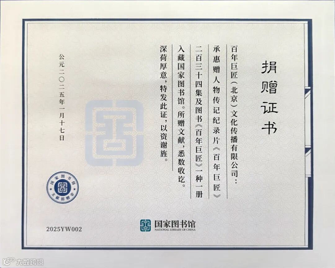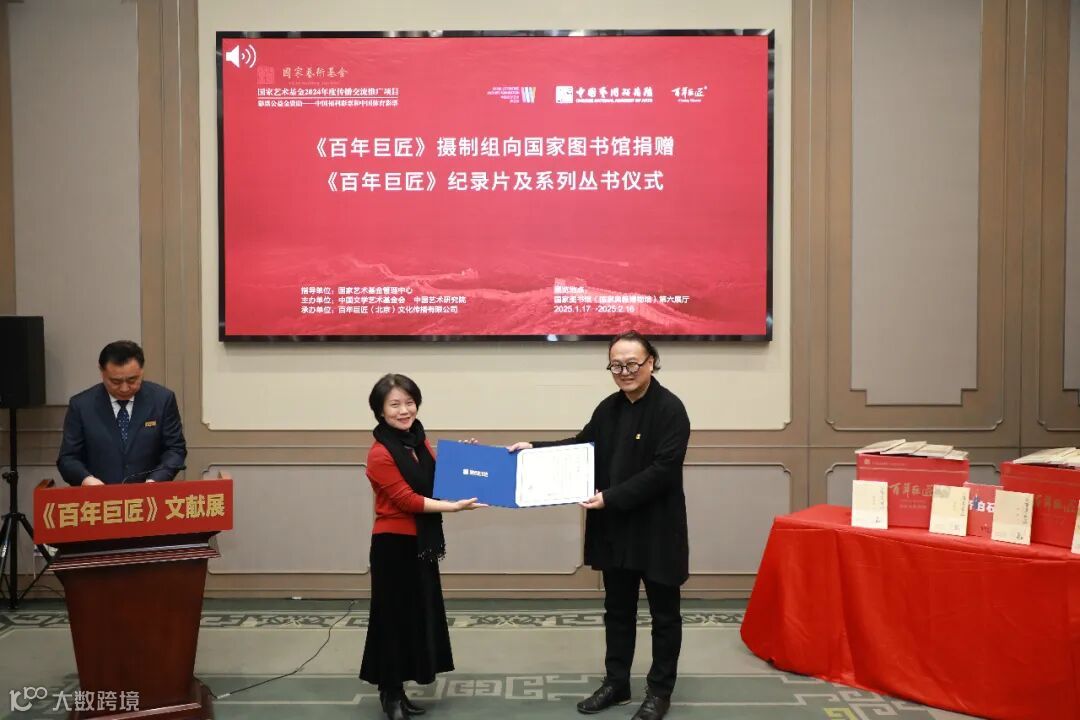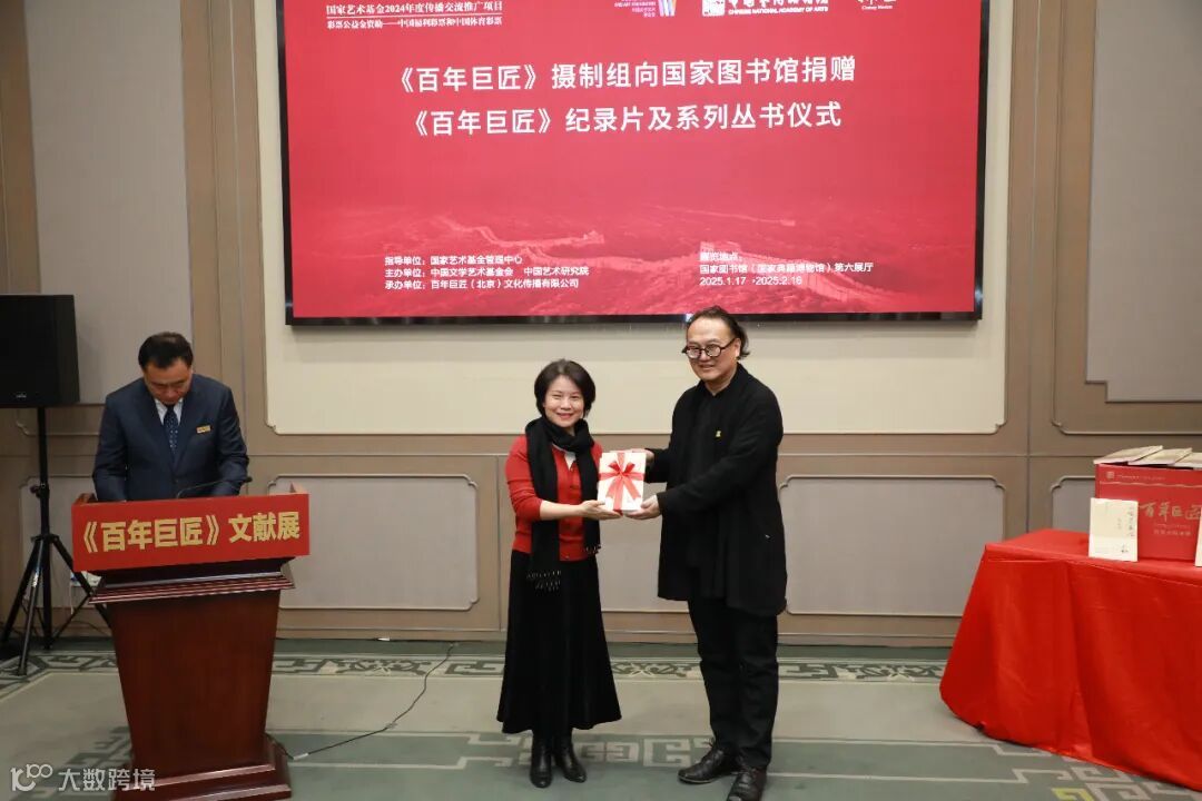开幕式上举行了捐赠仪式,由中国文联党组成员、副主席、书记处书记高世名代表《百年巨匠》摄制组向国家图书馆党委书记、副馆长陈樱捐赠《百年巨匠》纪录片及系列丛书。陈樱向《百年巨匠》摄制组颁发了捐赠证书。