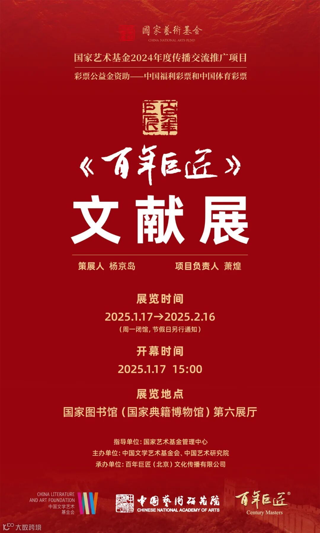 《百年巨匠》文献展在国家图书馆(国家典籍博物馆)第六展厅展出,将持续至2025年2月16日。